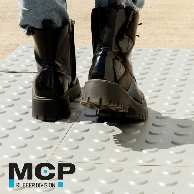 Aplicación: La Palmeta Podotáctil Estoperol Gris está diseñada para señalizar zonas de riesgo y guiar a personas en espacios de tránsito público, como estaciones, aceras y accesos. Su superficie con estoperoles en relieve proporciona una guía táctil eficiente, siendo especialmente útil para personas no videntes, asegurando un desplazamiento seguro y controlado.