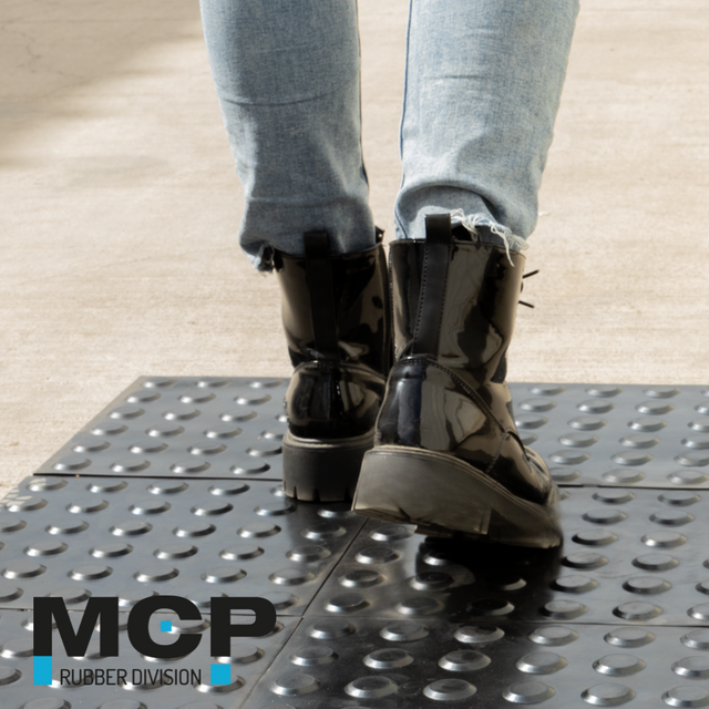 Aplicación: La Palmeta Podotáctil Estoperol Negro está diseñada para señalizar zonas de riesgo y guiar a personas en espacios de tránsito público, como estaciones, aceras y accesos. Su superficie con estoperoles en relieve proporciona una guía táctil eficiente, siendo especialmente útil para personas no videntes, asegurando un desplazamiento seguro y controlado.