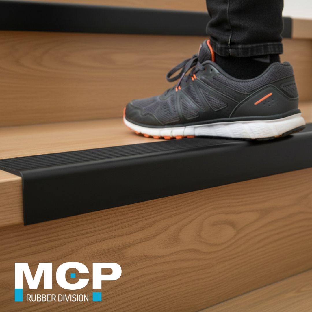 Compra ahora tu nariz de grada de caucho estriada por metro y reduce el riesgo de accidentes.